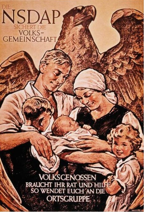 Nazi Germany offers one of the clearest historical examples of state-driven pronatalism. The regime explicitly tied reproduction to racial ideology, promoting childbirth among “Aryan” women while violently preventing it among Jews, Roma people, disabled people, and others deemed undesirable. Policies included marriage loans forgiven with each child, bans on abortion and contraception for “racially valuable” women, and state honors like the Mother’s Cross awarded to women who produced four or more children for the Reich. The Lebensborn program went further still, using state resources to engineer the reproduction of racially “pure” offspring.